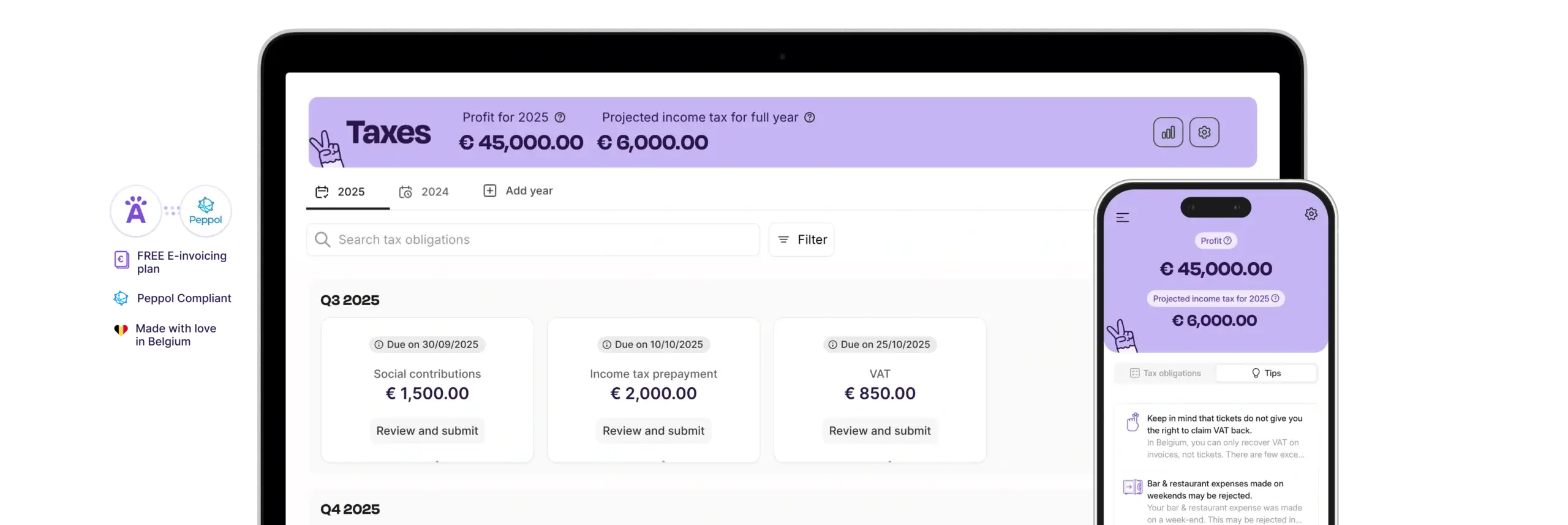 You know what you owe in taxes, VAT, and social contributions at any time