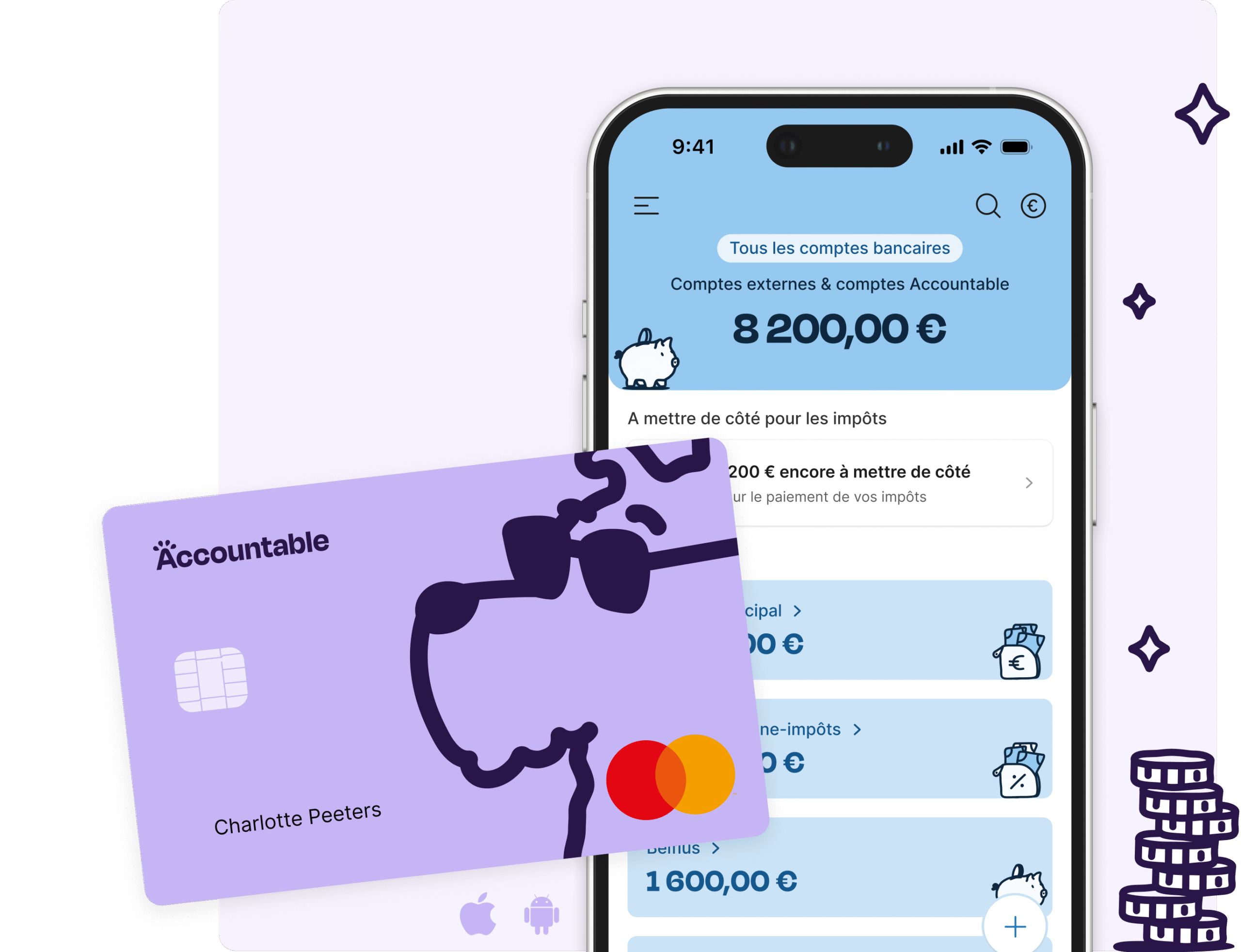 Le seul compte professionel gratuit en Belgique qui met automatiquement de l'argent de coté pour les impôts. Conçu pour les indépendants.