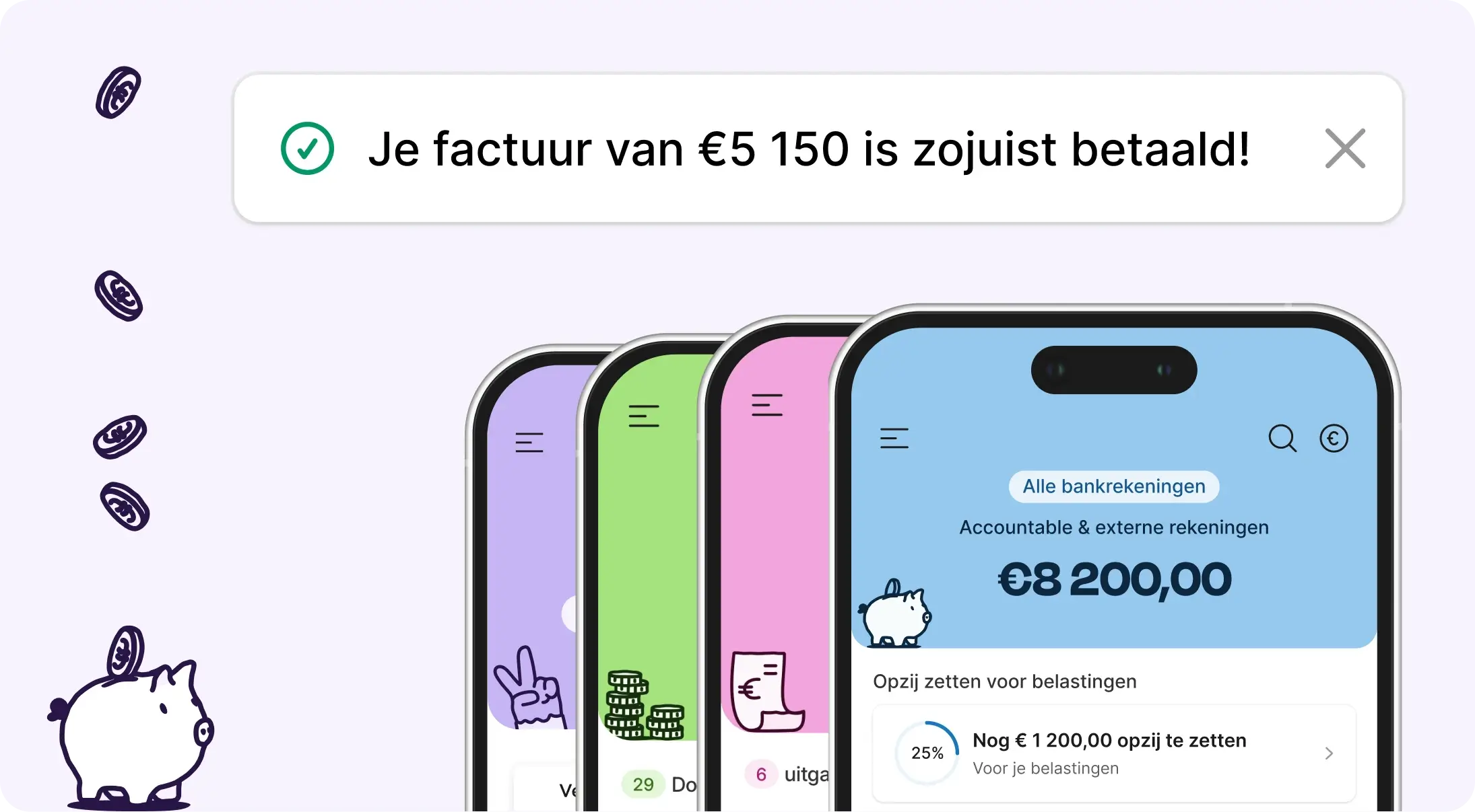 De enige gratis zakelijke rekening in België waarmee je automatisch geld opzij zet voor belastingen. Gemaakt voor zelfstandigen.